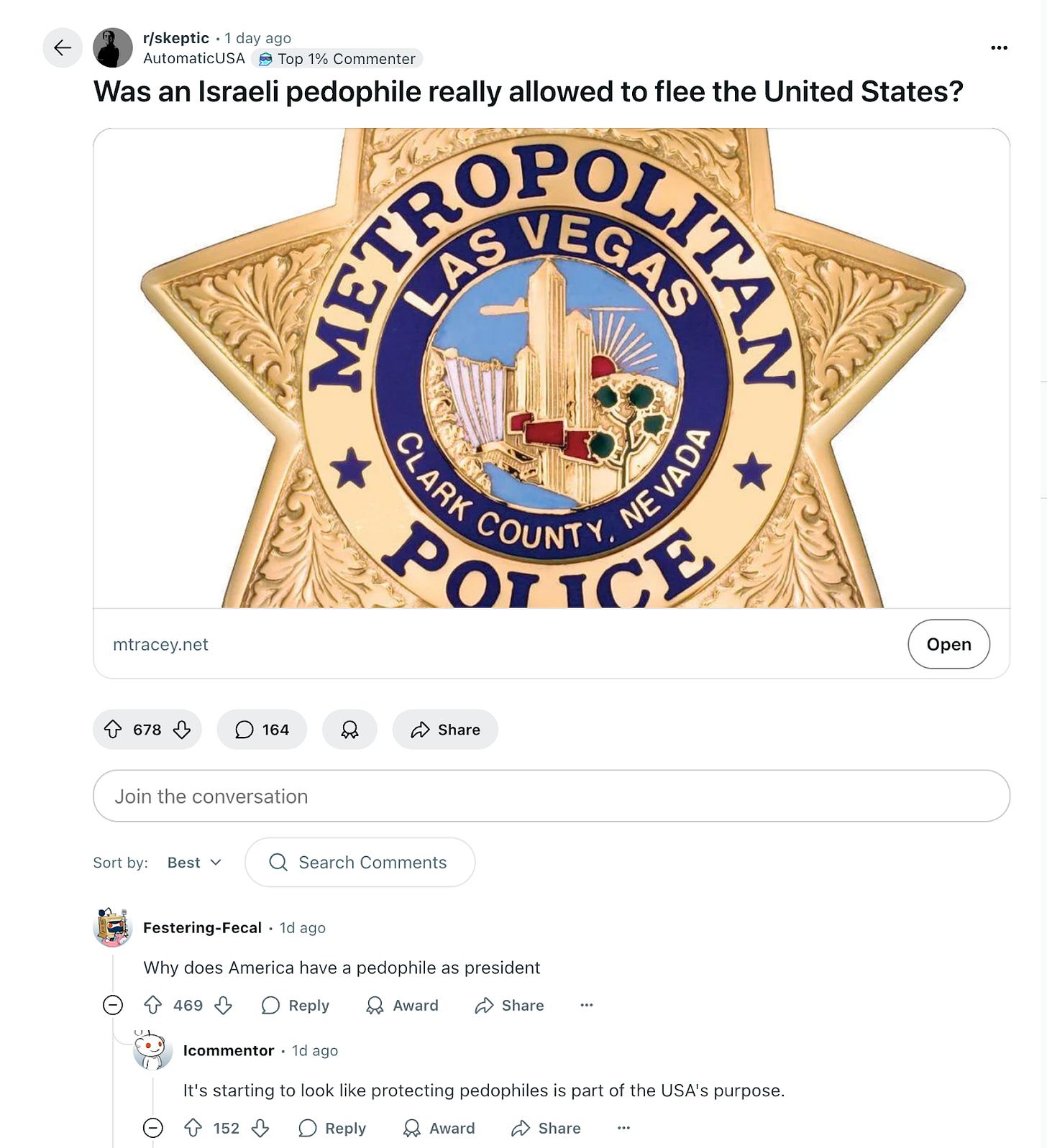 “Why does America have a pedophile as president,” the commenter plaintively asks, as if we can all just take for granted that Donald J. Trump is a confirmed pedophile, and this is something any right-minded citizen would know has been conclusively proven. “It’s starting to look like protecting pedophiles is part of the USA’s purpose,” replies the second top-rated commenter, as if it should be obvious to all informed observers that recent events show the core “purpose” of the United States as a national entity is to “protect pedophiles.” Meanwhile, these commenters are reacting to a news story about a lavishly funded government program specifically designed to proactively prosecute pedos, thanks to a $147 million influx of grants handed down by the US Department of Justice between 2021 and 2024, for the purpose of countering “Internet Crimes Against Children” — on top of whatever other funding sources a given cohort of participating agencies can undoubtedly conjure to carry out their Task Force Tasks. This taxpayer-funded pedo targeting operation — so hot in pursuit of the pedos that non-existent children were dispatched to adult-only hookup apps — actually somehow proves that the US is fundamentally controlled by pedo interests. And the Executive Branch is personally run by a pedo. Alrighty then. Yeah, I know it’s just a dumb reddit comment, but it’s still hilarious that this particular subreddit, r/skeptic, describes itself as all about “combining knowledge of science, philosophy, and critical thinking with careful analysis to help identify flawed reasoning and deception.” It was apparently by following this process of rigorous reasoning that these redditors concluded the President is a pedo, and the entire Constitutional order of the United States is organized around shielding pedos. Dave Smith would seem to agree, albeit on more anti-establishment podcast grounds. And off they all go on their merry way, twirling to the sounds of the Pedo Panic.