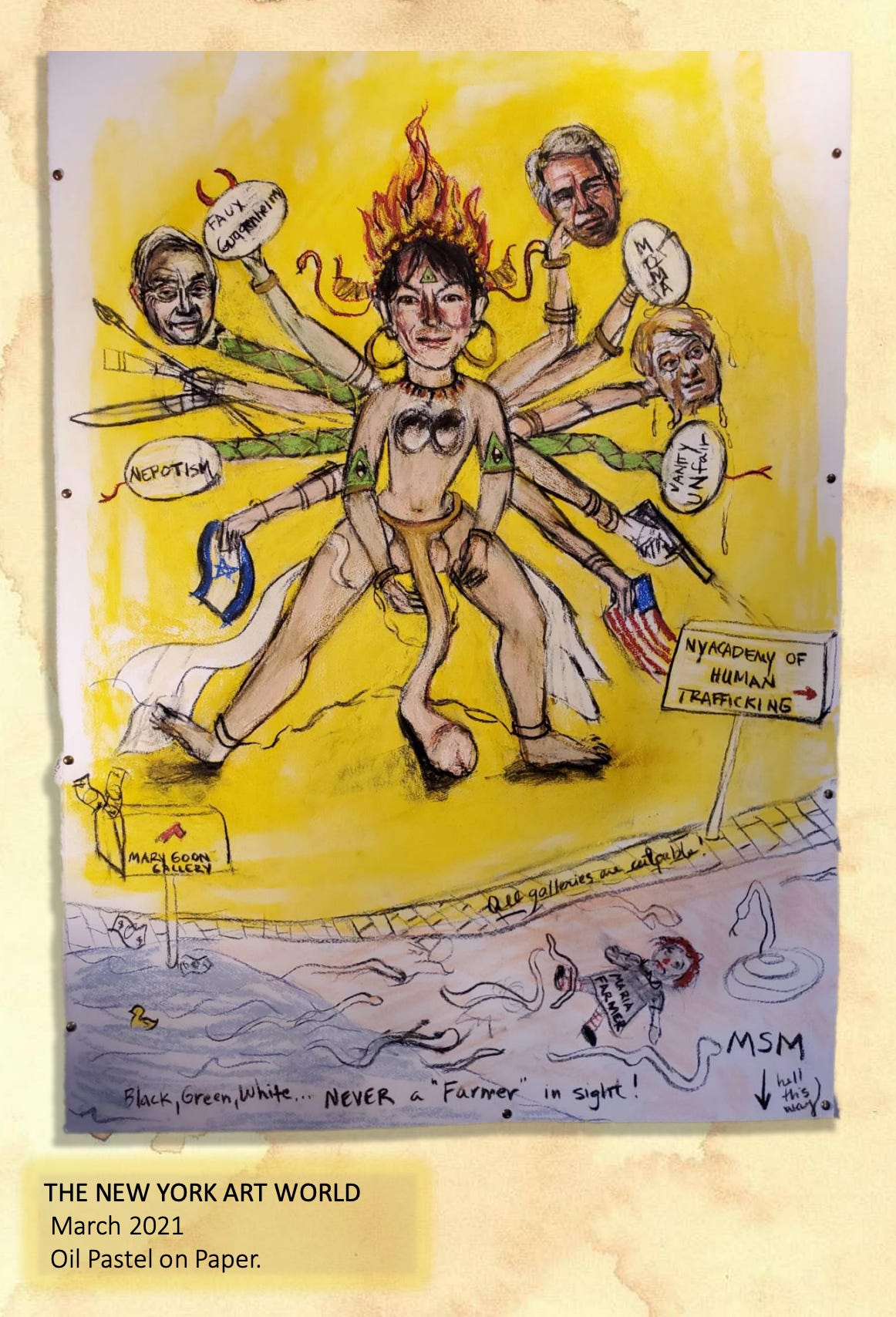 Maria Farmer was born November 28, 1969, making her currently 55 years old. She produces artwork focused on “exposing the elites.” Her March 2021 collection was published by David Icke, an apparent colleague of Whitney Webb. Farmer asked Webb during their phone call if she would put her in touch with Icke, and Webb readily agreed. Icke is perhaps best known for his theory that a secret race of reptilian humanoids dominate earthly affairs.