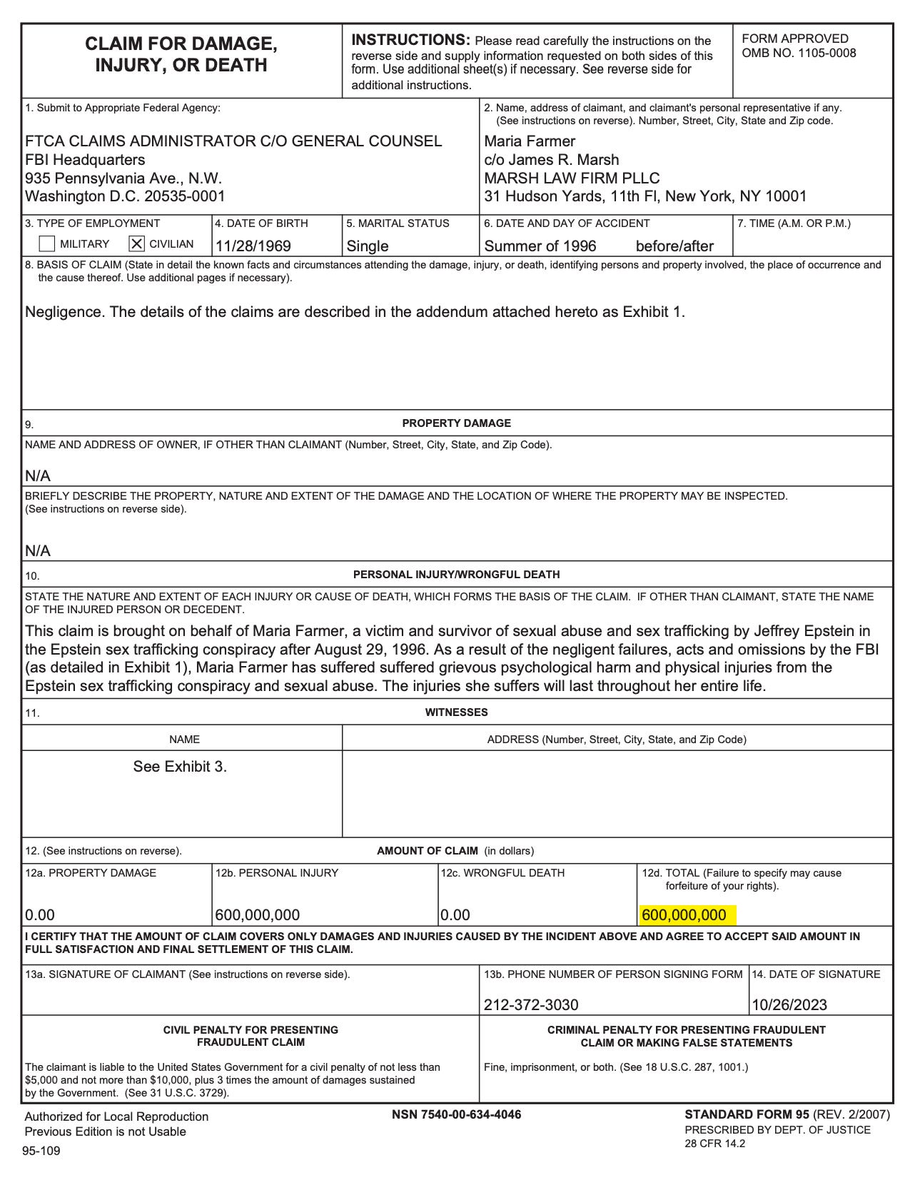 Stein claims in her lawsuit that she was “violently punished and her anus was penetrated with a weapon for resisting sexual abuse at Epstein’s Florida residence.”